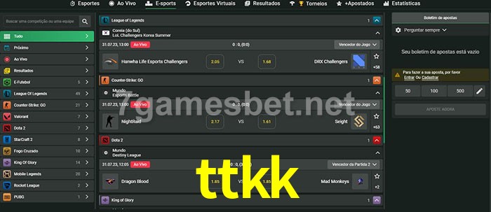 O ttkk oferece uma grande seleção de opções de apostas em e-sports com probabilidades competitivas